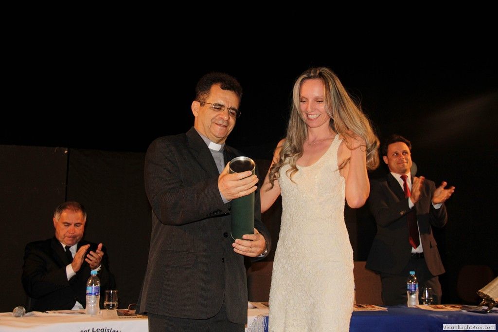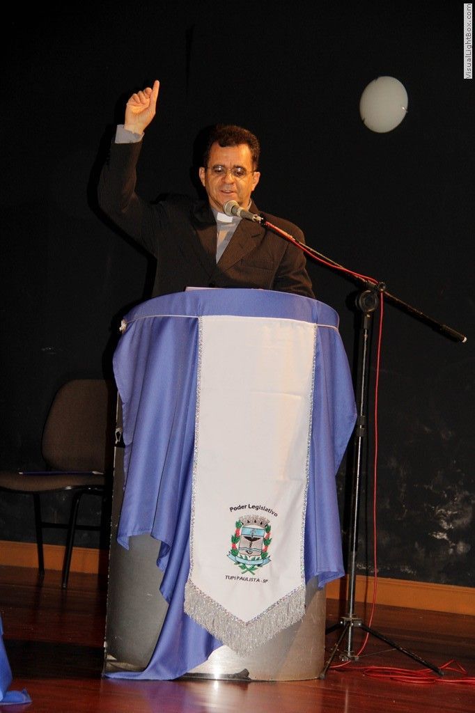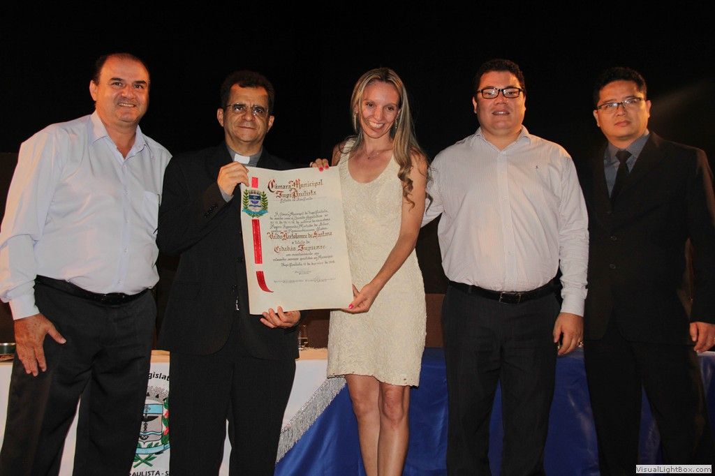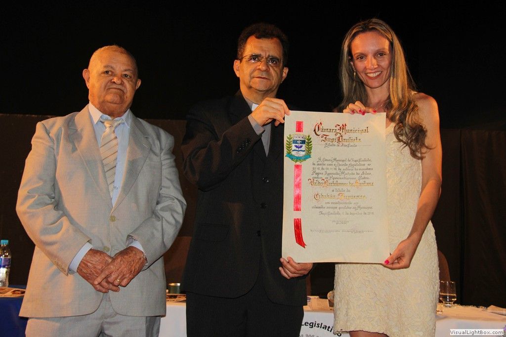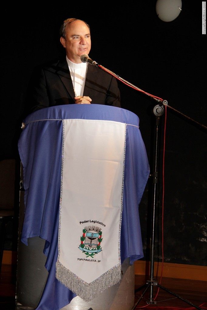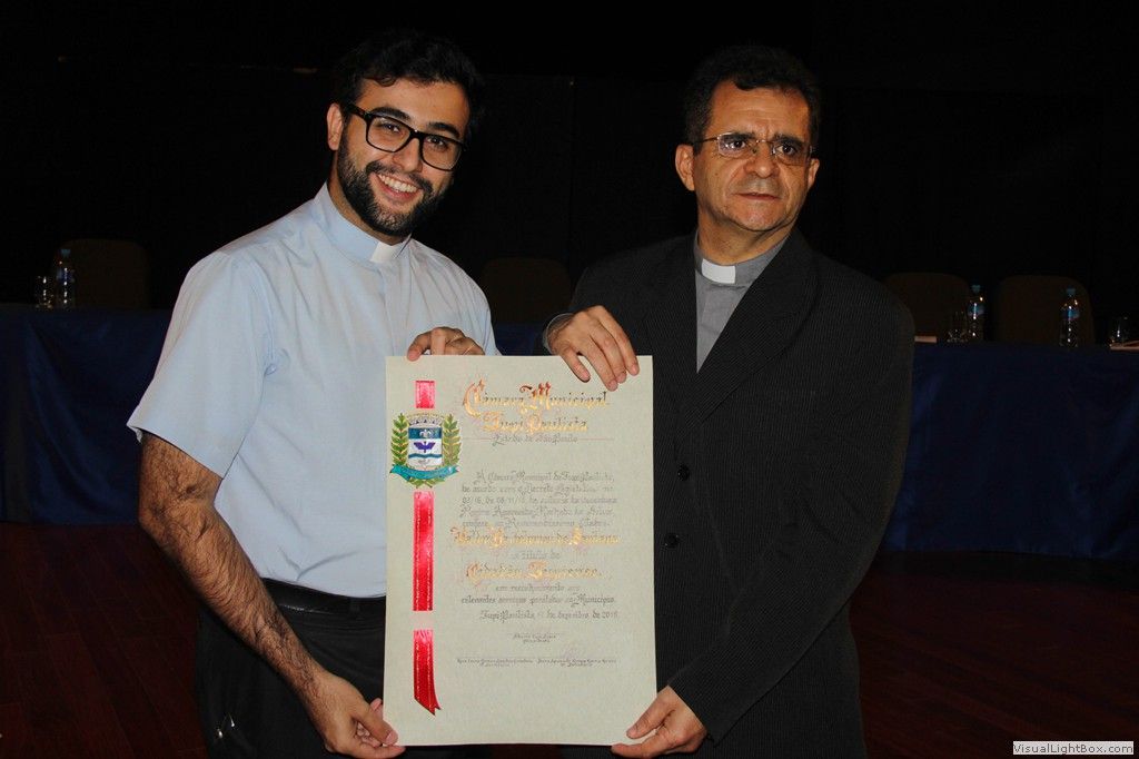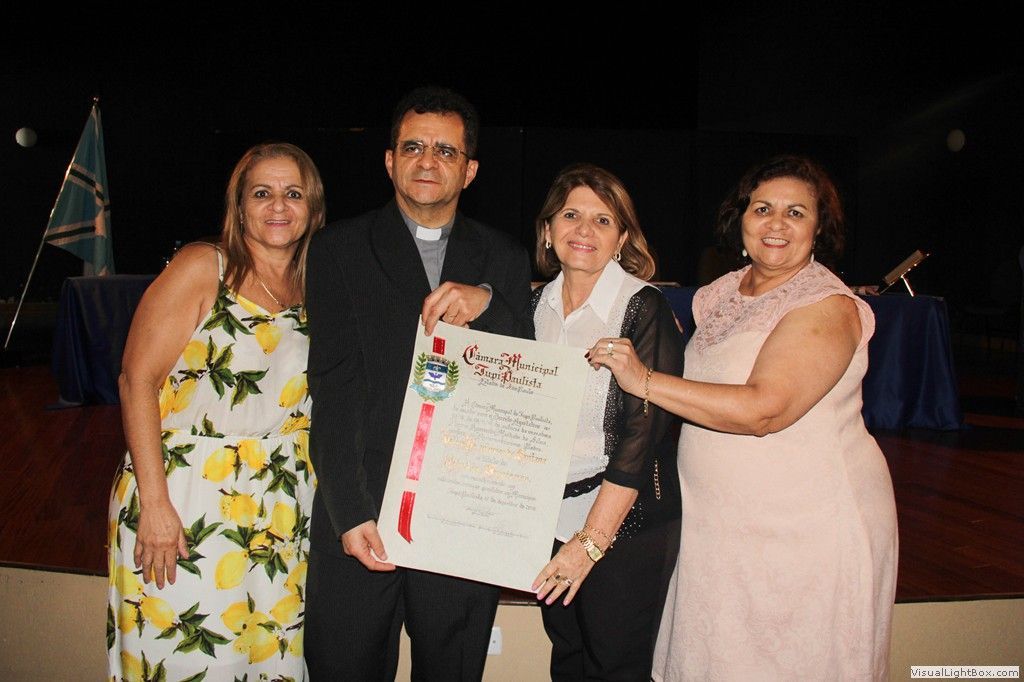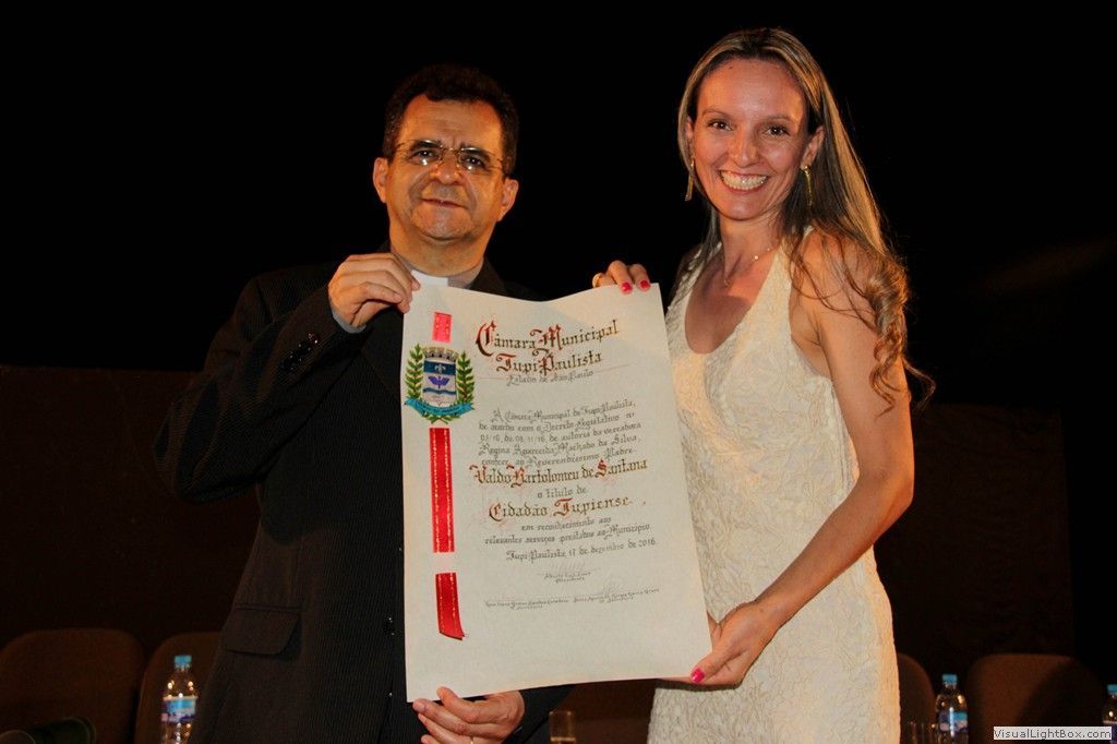 Padre Valdo Bartolomeu de Santana recebeu o "Título de Cidadão Tupiense" pelos relevantes serviços prestados à comunidade, na manhã de sábado, 17, nas dependências do Teatro Municipal "Zanoni Ferrite" de autoria da vereadora Regina Machado.