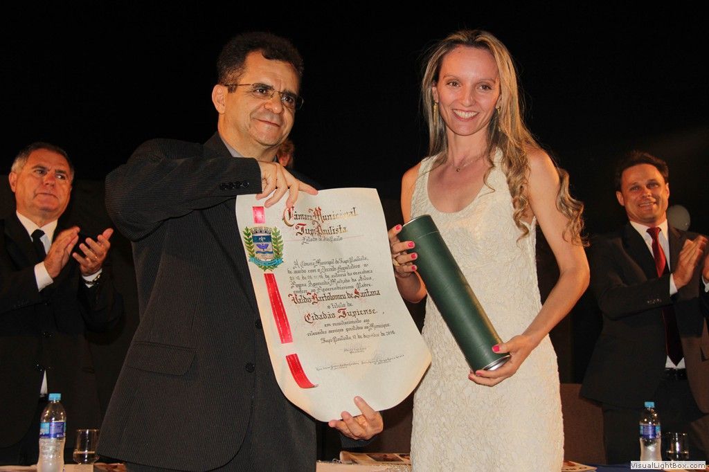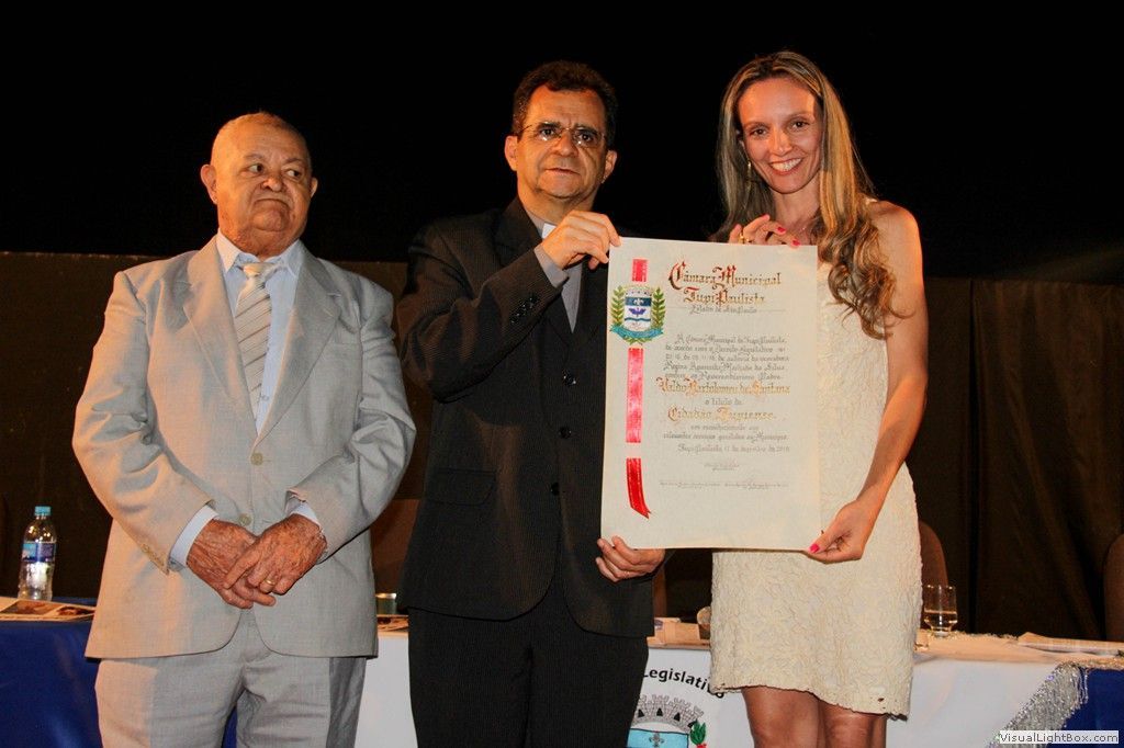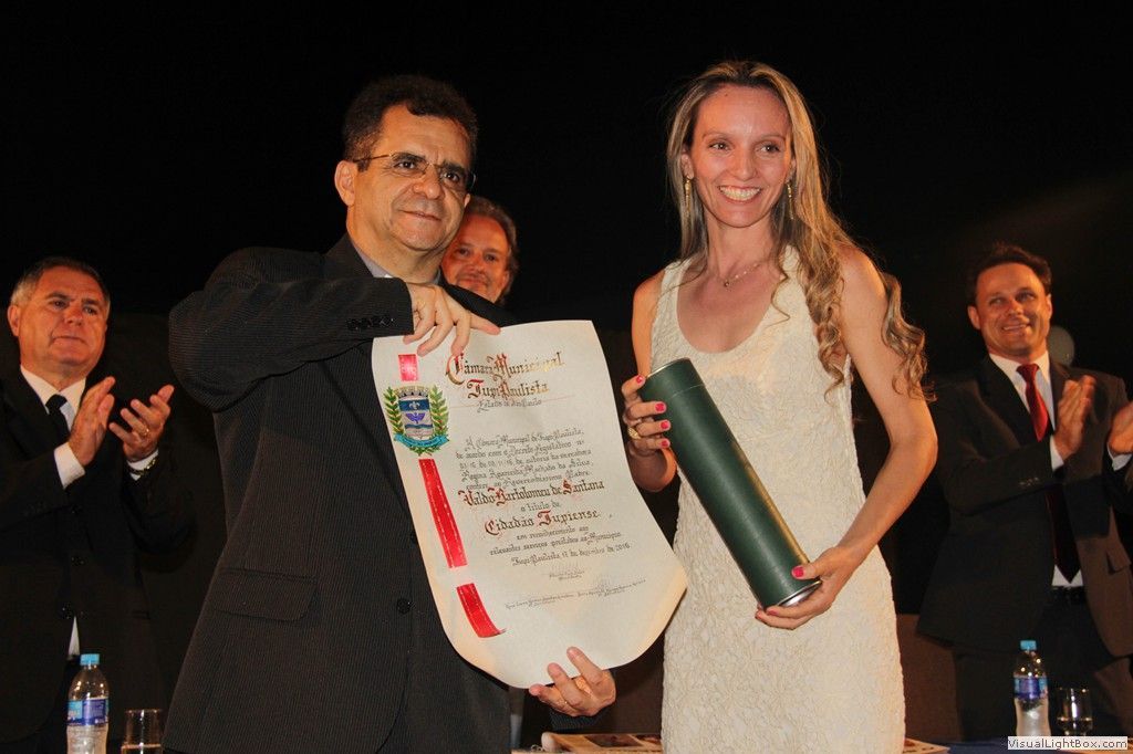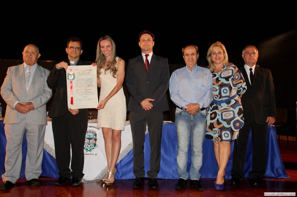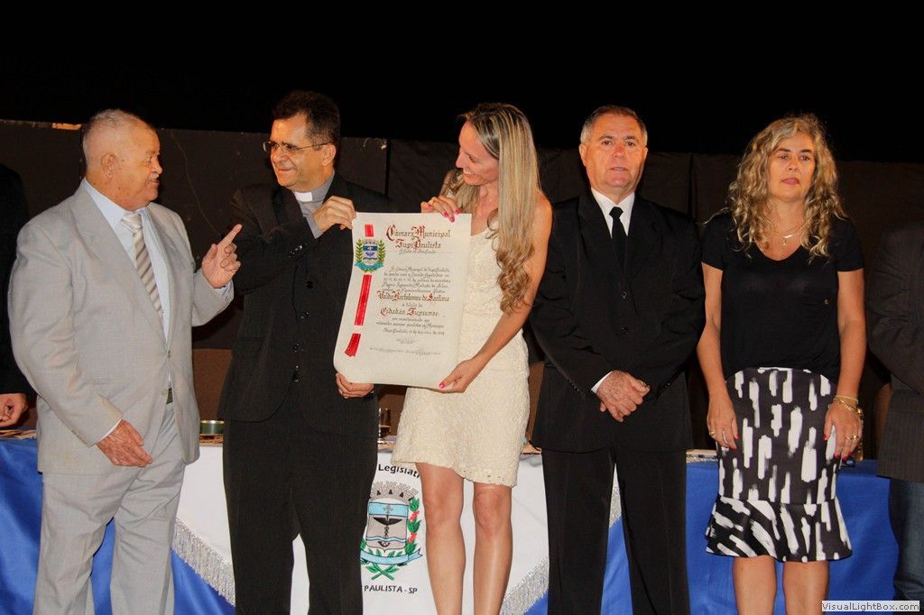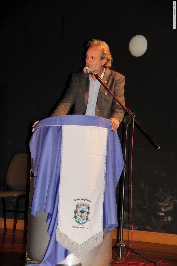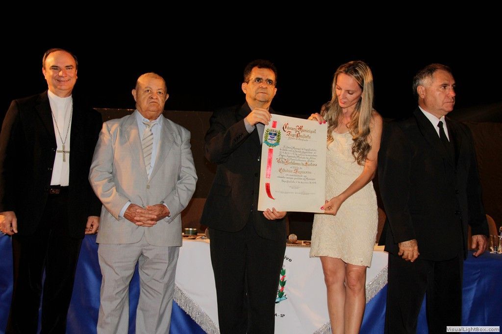 Padre Valdo Bartolomeu de Santana recebeu o "Título de Cidadão Tupiense" pelos relevantes serviços prestados à comunidade, na manhã de sábado, 17, nas dependências do Teatro Municipal "Zanoni Ferrite" de autoria da vereadora Regina Machado.