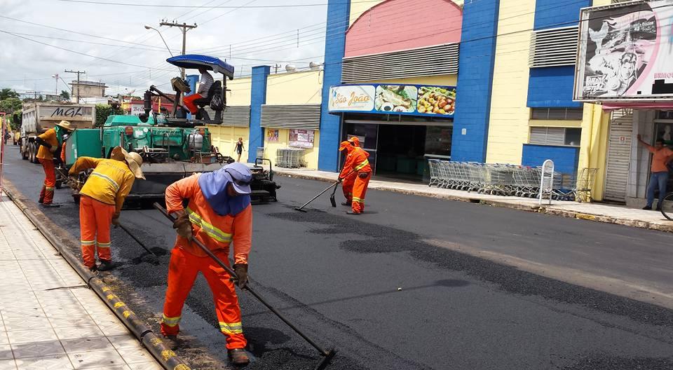 Nas fotos, registro da avenida 9 de Julho, recebendo a pavimentação.