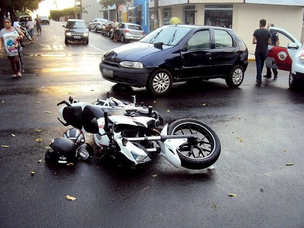 Um veículo que subia a avenida no sentido ao centro da cidade se envolveu na colisão com a moto que trafegava no mesmo sentido no momento que iria virar à squerda para entrar na Frei Perin.