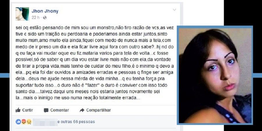 Na domingo (4), ele tentou se defender. Em nova postagem, confessou o homicídio, entretanto, disse que "ficou com medo" de nunca mais reatar o relacionamento com a vítima ou de ser preso e "ela ficar livre aqui fora com outro". "Tenho que cuidar do meu filho, pois é o mínimo que devo a ela. Que Deus me ajude a suportar tudo isso."