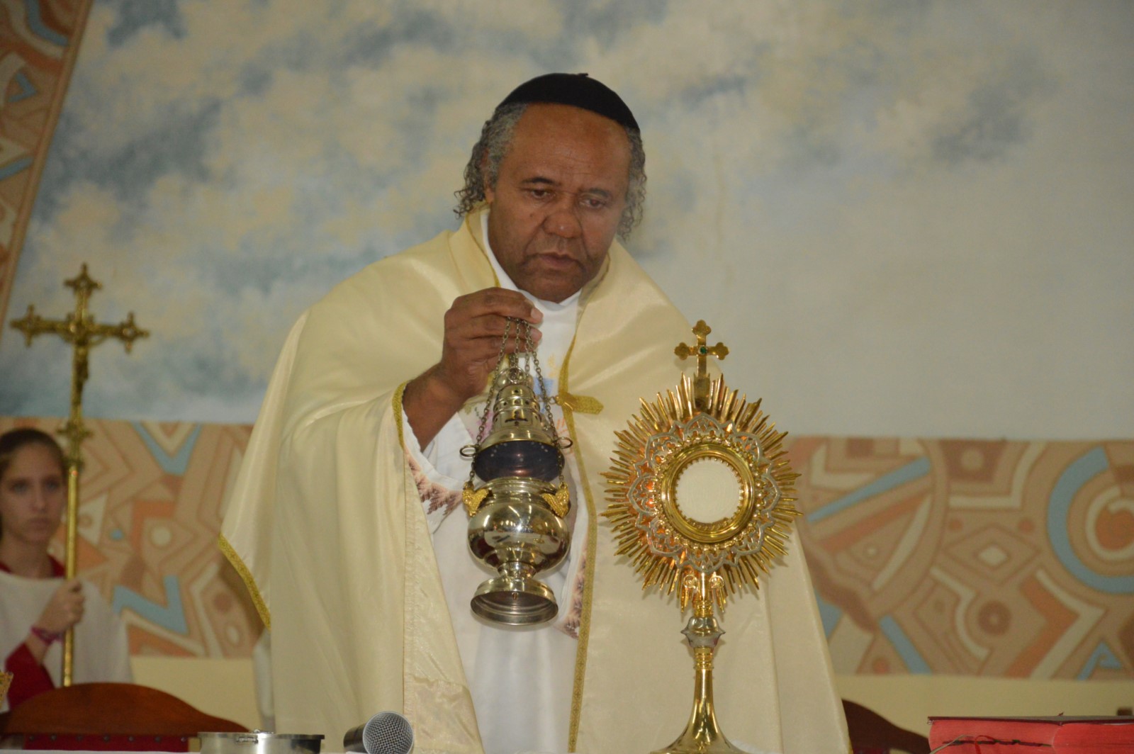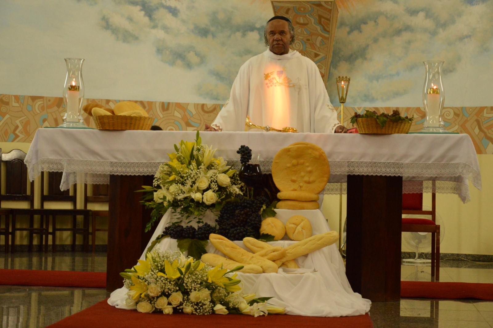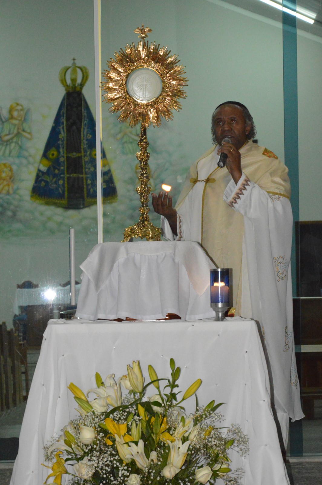 O padre Valdemar Cardoso presidiu a celebração e enfatizou na homilia a importância da Eucaristia e comunhão que liga cada cristão entre si e com a santíssima trindade, através do amor e do serviço ao próximo.