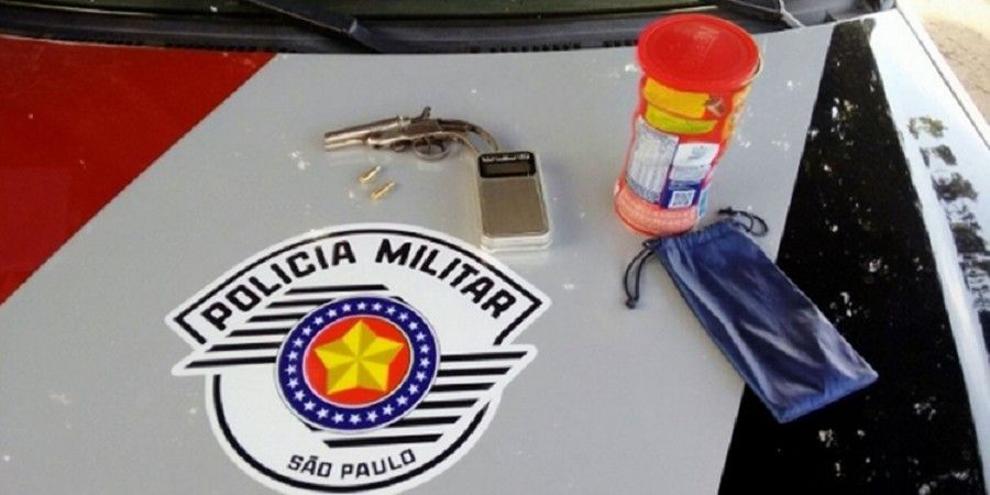 Arma apreendida pela PM estava escondida dentro de lata de achocolatado (Foto: Polícia Militar/Divulgação )