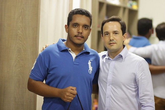 O ganhador Vitor Hugo Teixeira e o proprietário da lojaOtávio de Marchi (Foto: Lucas Mello/JR)