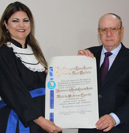 Coube ao professor José Gonzaga da Silva Neto a entrega do diploma de Professor Emérito à professora Rosamaria de Almeida Camacho Simini.