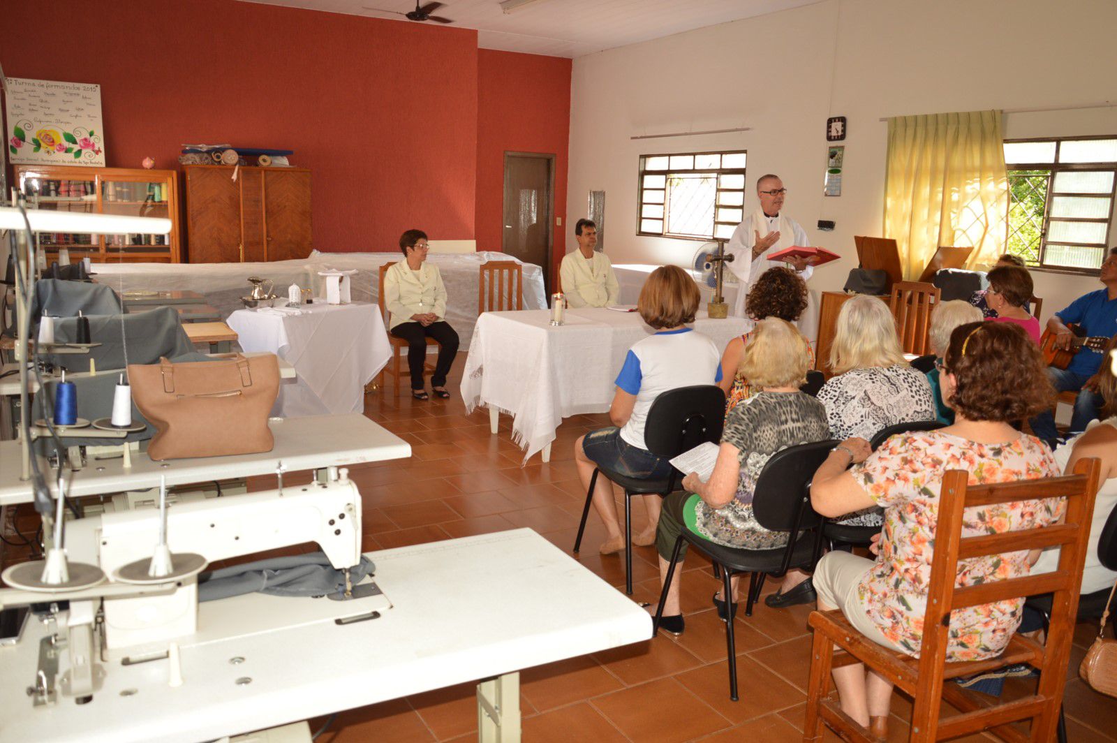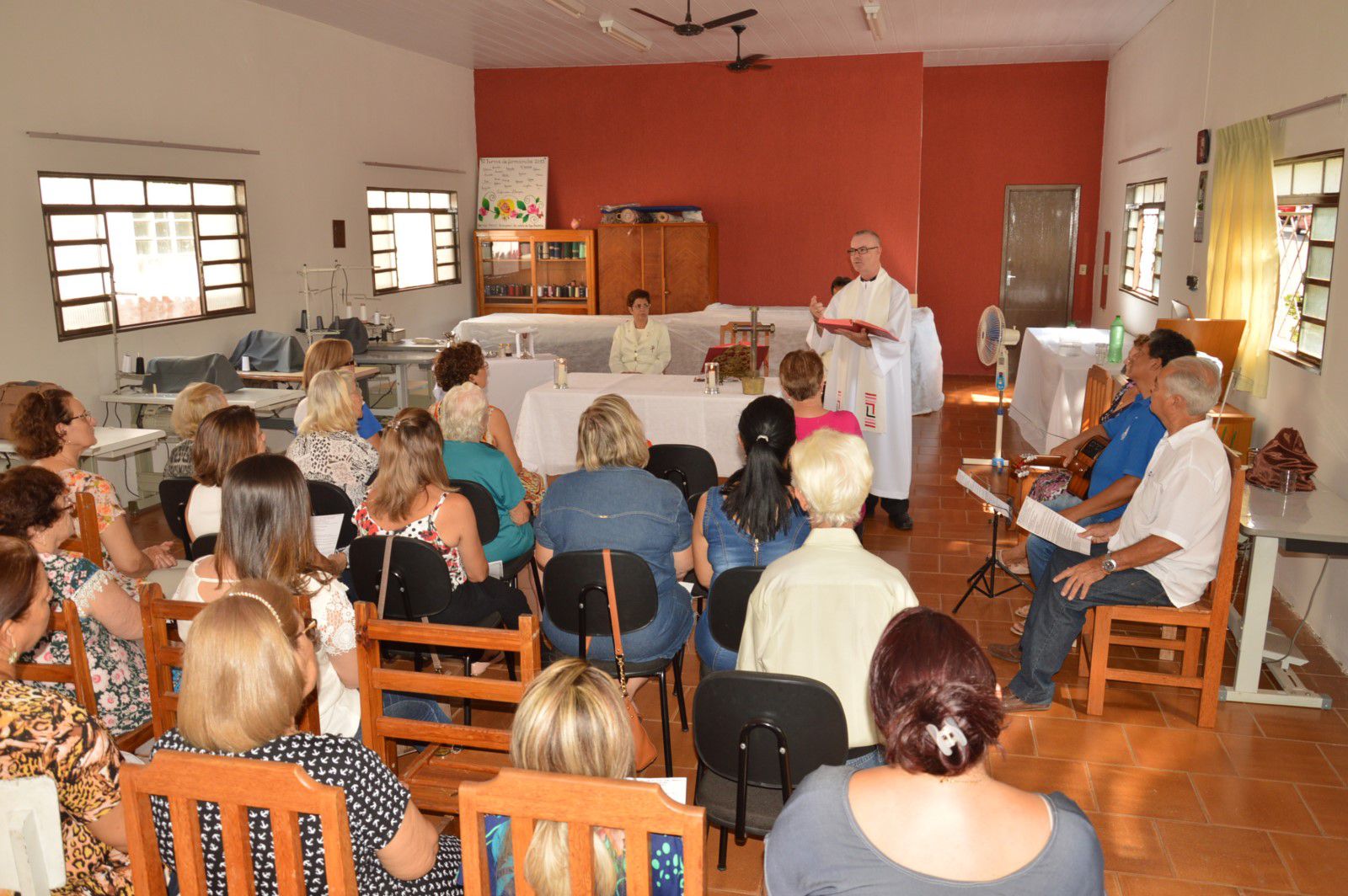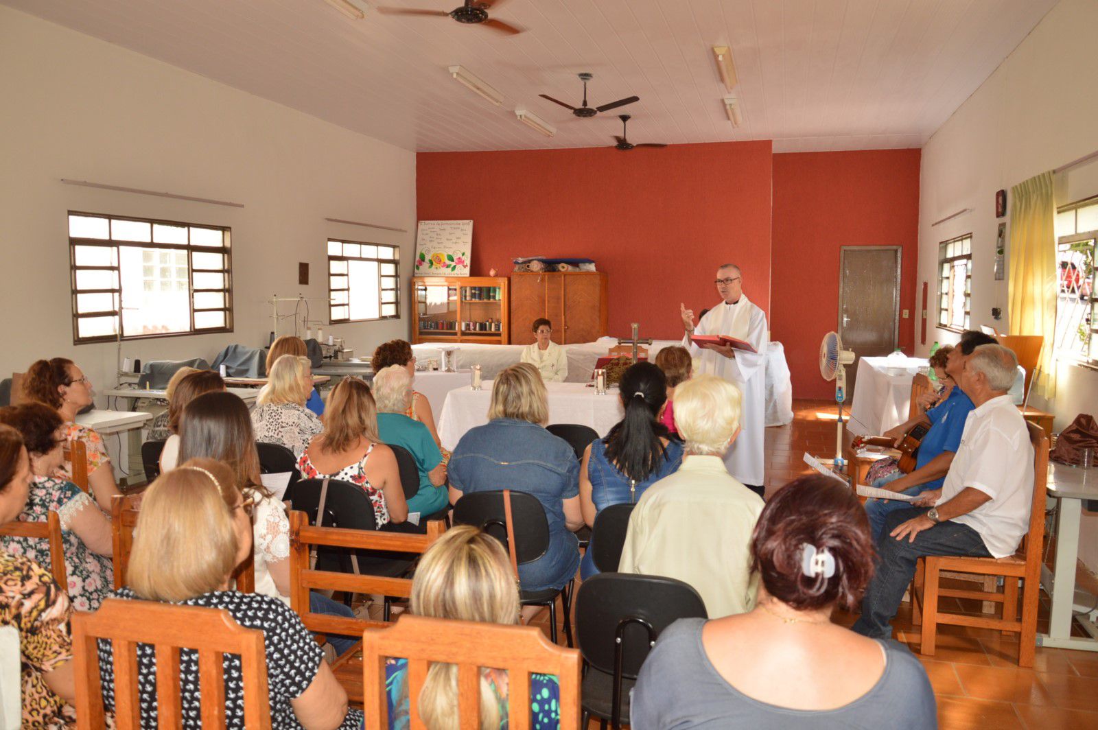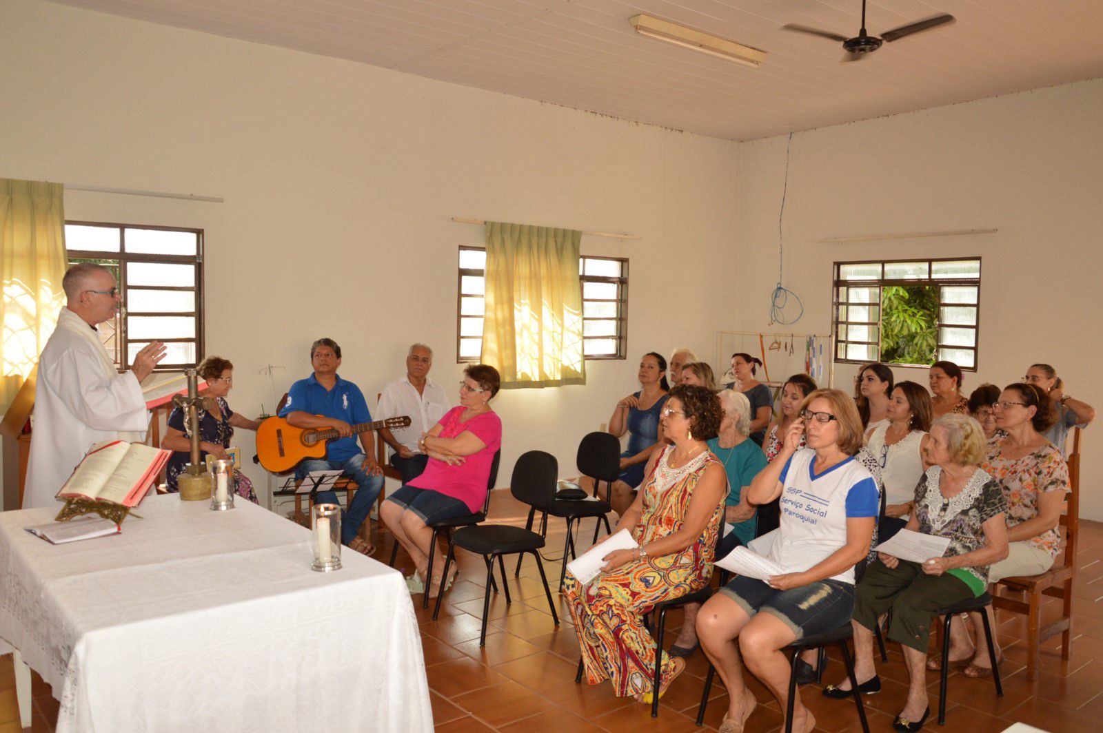 Depois de mais um ano de atividades, o Serviço Social Paroquial – SSP encerrou na tarde de terça-feira (12) os trabalhos do ano. Como forma de agradecimento pelas conquistas do ano, a diretoria, funcionários e voluntárias (os), organizaram uma missa que foi presidida pelo padre João de Chico. Todos os participantes acompanharam a cerimônia como uma forma de agradecimento pelo ano de 2017, se preparando para a chegada do novo ano. O evento destacou a importância do SSP. “Através da entidade presta-se atendimento social promovendo mais qualidade de vida aos atendidos”.