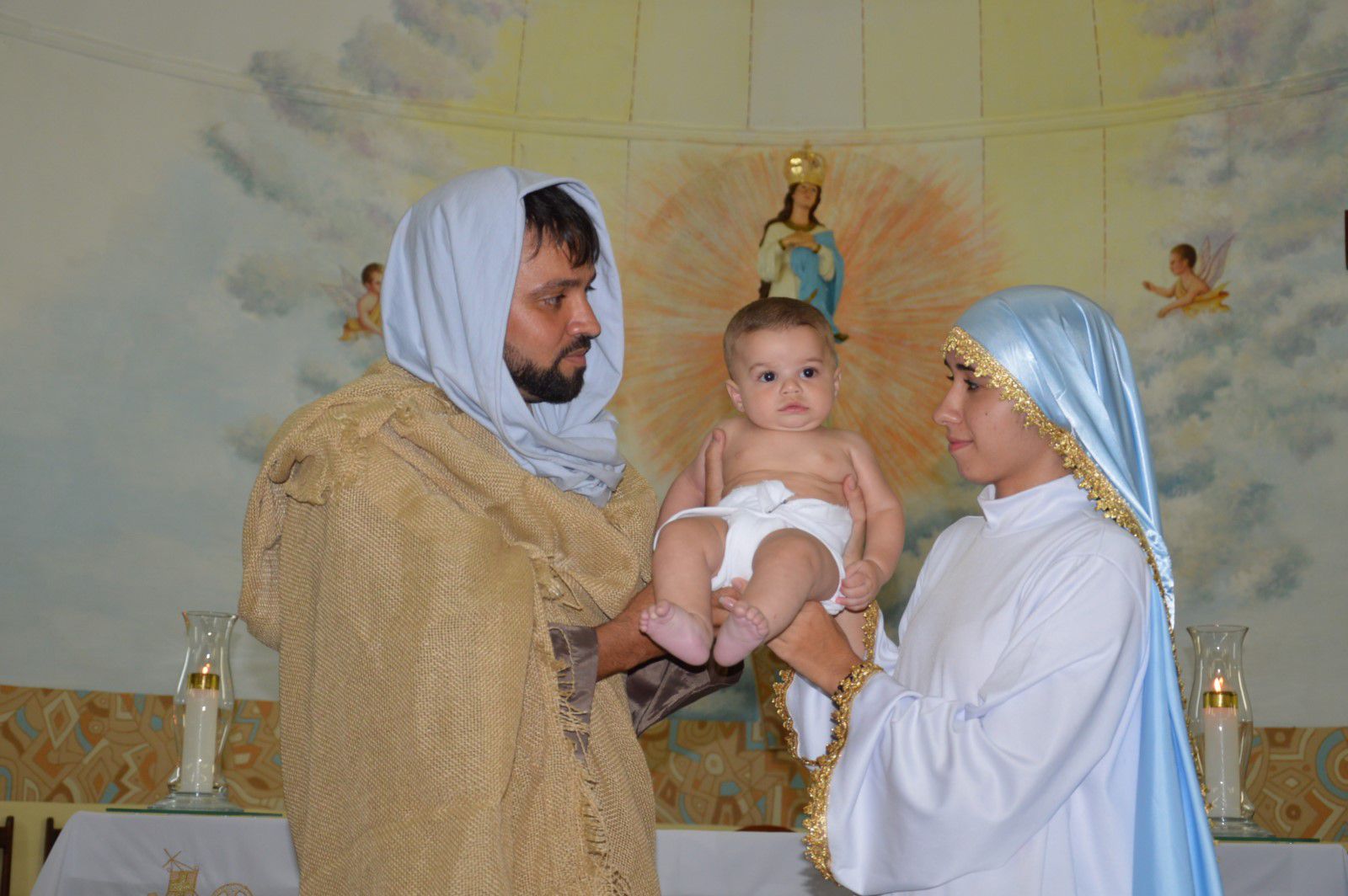 Iniciou-se com uma encenação teatral do nascimento de Jesus, na Matriz Nossa Senhora da Glória de Tupi Paulista.