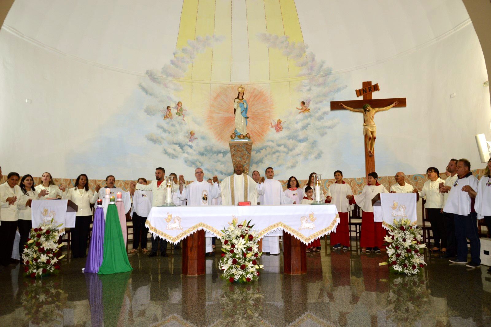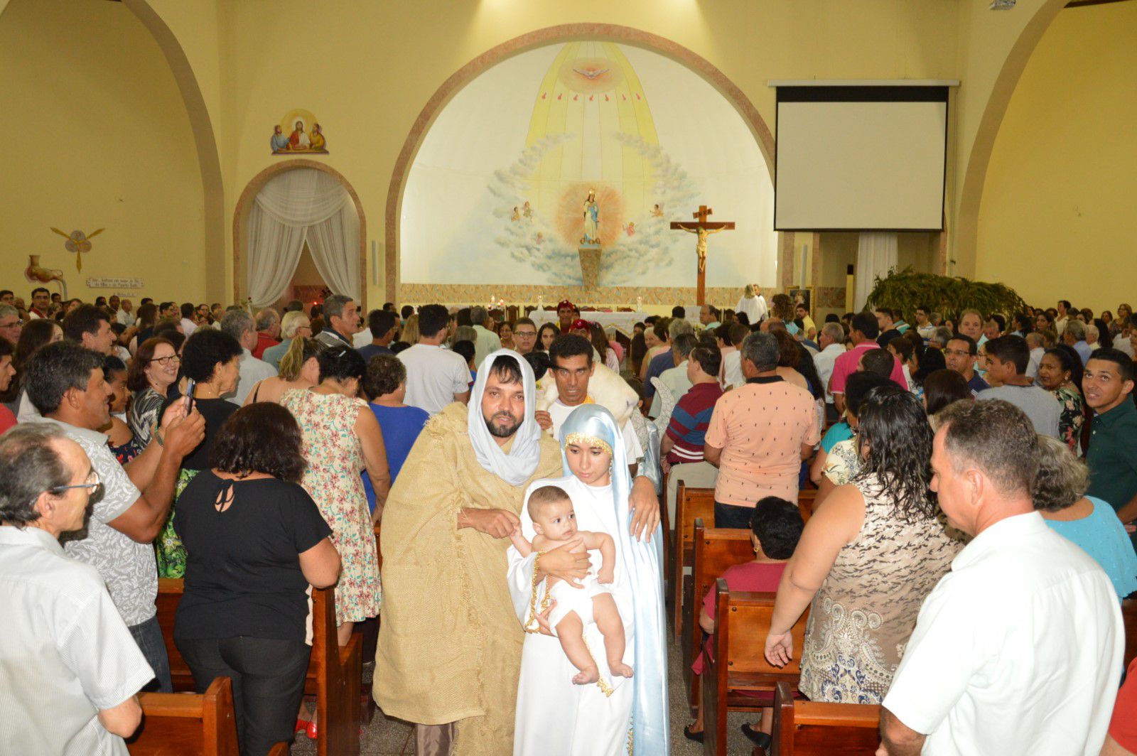 Centenas de fiéis participaram na noite de domingo (24/12), da Missa de Natal presidida pelo pároco Padre Valdemar Cardoso e concelebrada pelo vigário paroquial, Pe. João de Chico com participação do seminarista Muriel.