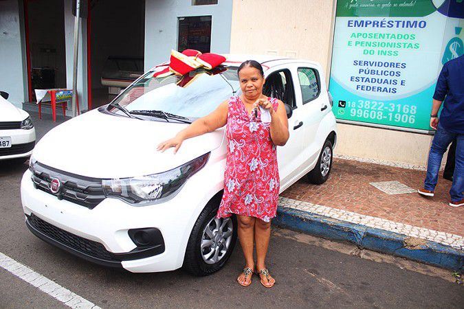 A moradora do Jardim Vera Cruz, Maria Aparecida dos Santos Queiroz, 55, é a ganhadora do Fiat Mobi 0 km da campanha “Show de Prêmios” da Associação Comercial e Empresarial de Dracena (ACE).