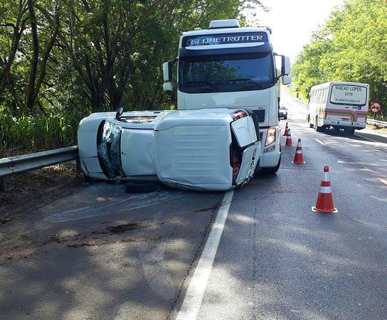 Segundo a PM Rodoviária, o acidente envolveu um Fiat Fiorino e um caminhão bi-trem com placas de Belo Horizonte - MG e Caibi – SC.