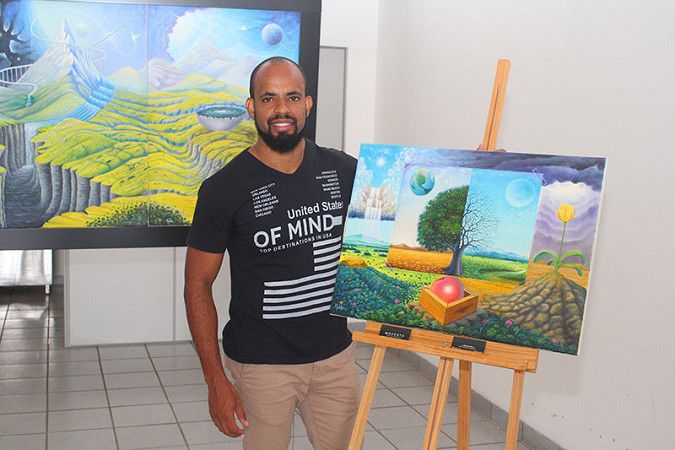 O artista plástico Reginaldo Modesto apresenta suas obras na exposição intitulada “Celestial”, no Cedrac até a próxima quinta (Foto: Lucas Mello/JR)