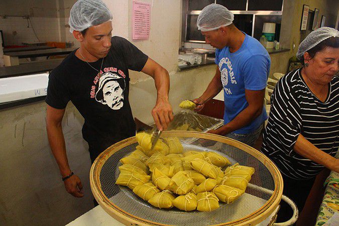 Estão à venda diversos produtos à base do milho, a pamonha custa R$ 5 cada unidade.