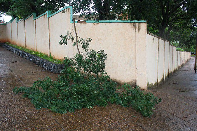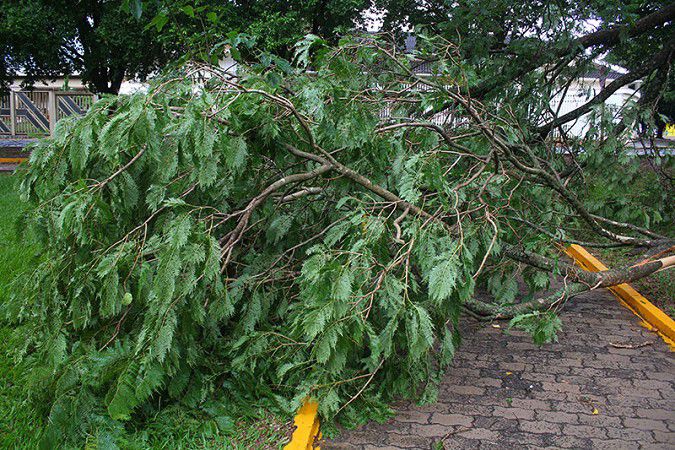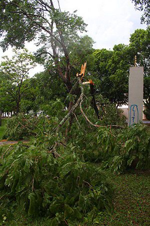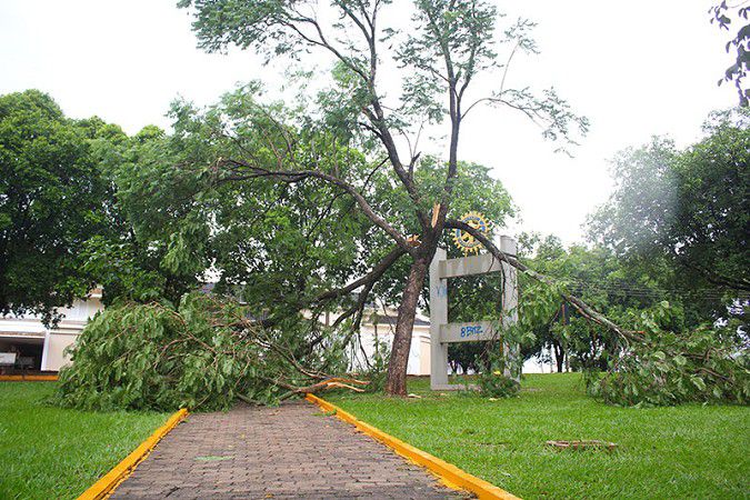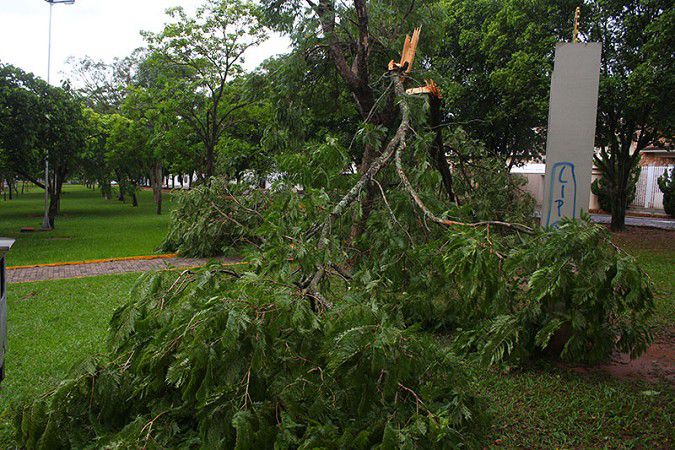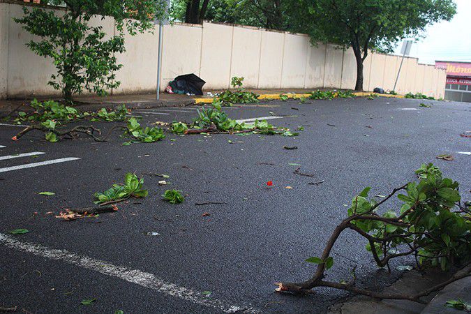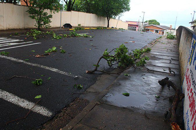 Em várias ruas pôde ser notada grande quantidade de folhas e algumas árvores caídas. Na Praça Rotary uma das árvores partiu ao meio.