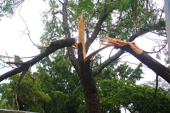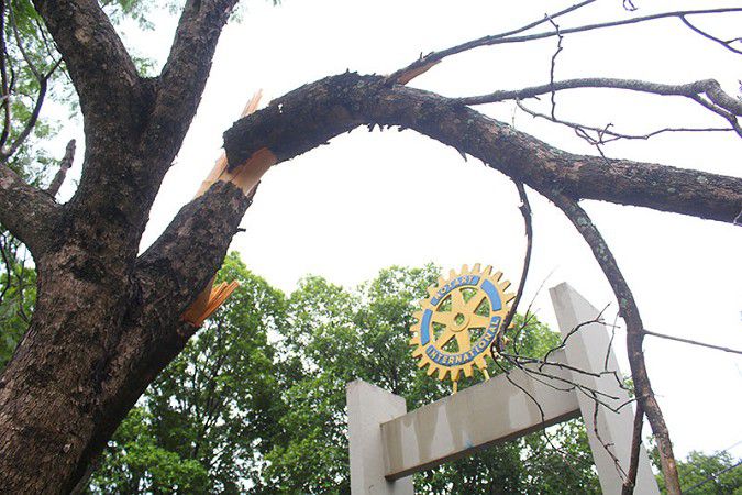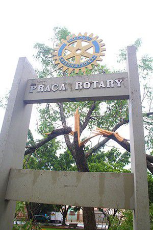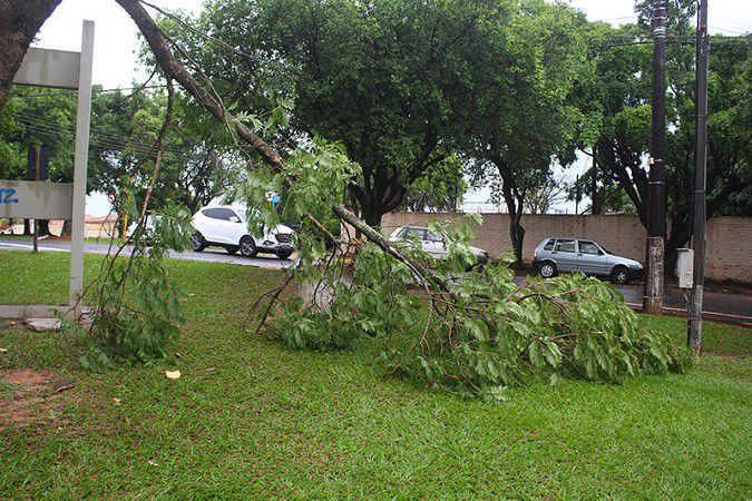 Árvore na praça Rotary teve galhos partidos ao meio. (Foto: Lucas Mello/JR)