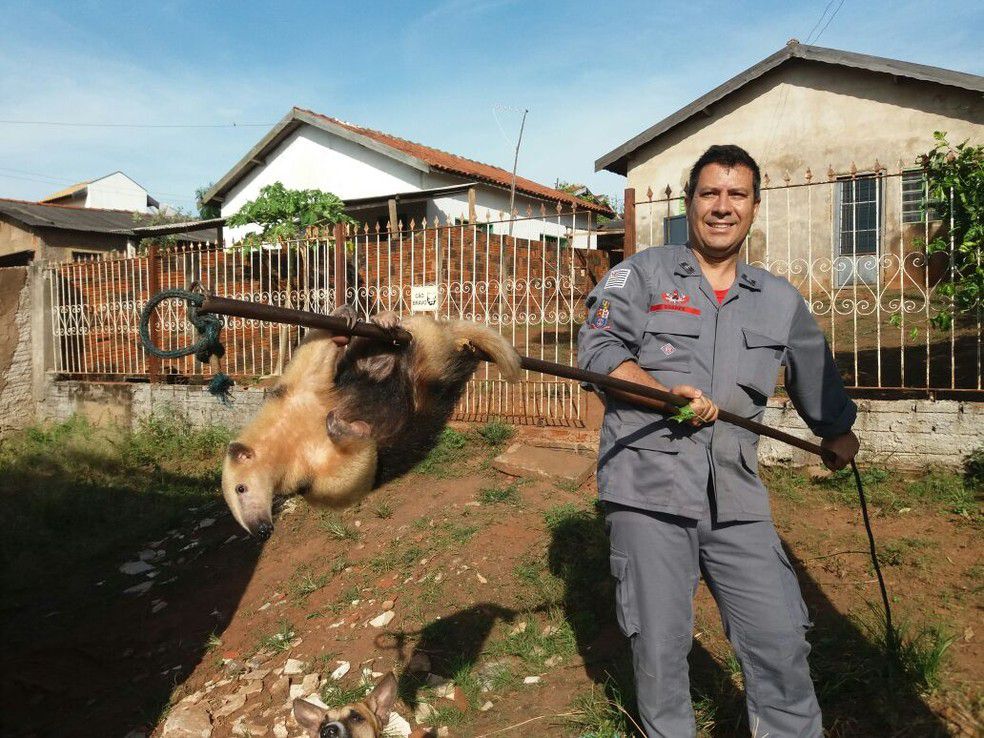 O Corpo de Bombeiros capturou no sábado (27) um tamanduá que havia aparecido em uma residência no bairro Mário Covas, em Flórida Paulista. Fora do seu habitat natural e ainda acuado por um cachorro do imóvel, o animal estava em situação de risco no local, segundo a corporação.