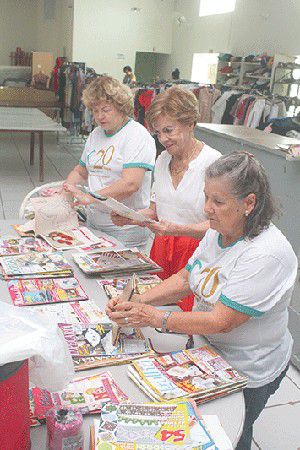 São 60 voluntários e mais de 20 colaboradoras no brechó – que funciona de segunda à sexta, das 13 às 17 horas, mesmo horário de atendimento da sede, cozinha e trabalhos manuais.