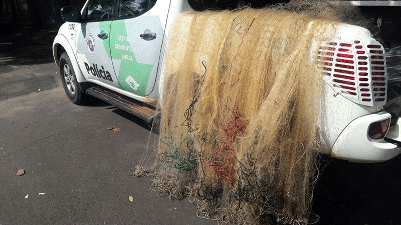 Durante a vistoria foi encontrado tarrafa de 2,5 metros de altura; malha 70 milímetros (mm); 19 redes de pesca com malhas de 70 mm a 140 mm, que totalizaram 302 metros. O material seria utilizado para pesca. Ainda foi encontrado no carro, documento do condutor e dono do automóvel, que conseguiu fugir.