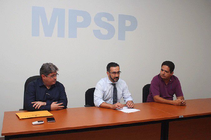 O prefeito Juliano Bertolini, o promotor de Justiça Rufino Eduardo Galindo Campos e o vereador Rodrigo Castilho (Foto: Lucas Mello/JR)