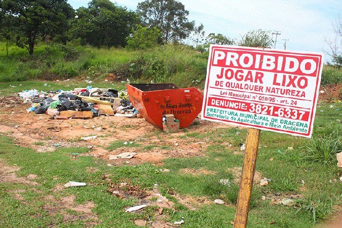 Nesse trecho da Vicinal Mário Covas, existe uma placa da prefeitura informando: “Proibido jogar lixo de qualquer natureza, conforme o regulamento na Lei Municipal nº 050/95 –art.24.”, mas mesmo assim, ainda é notável a falta de respeito de uma parcela da população com o meio ambiente, ao realizar o descarte incorreto do lixo orgânico e inorgânico.