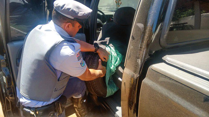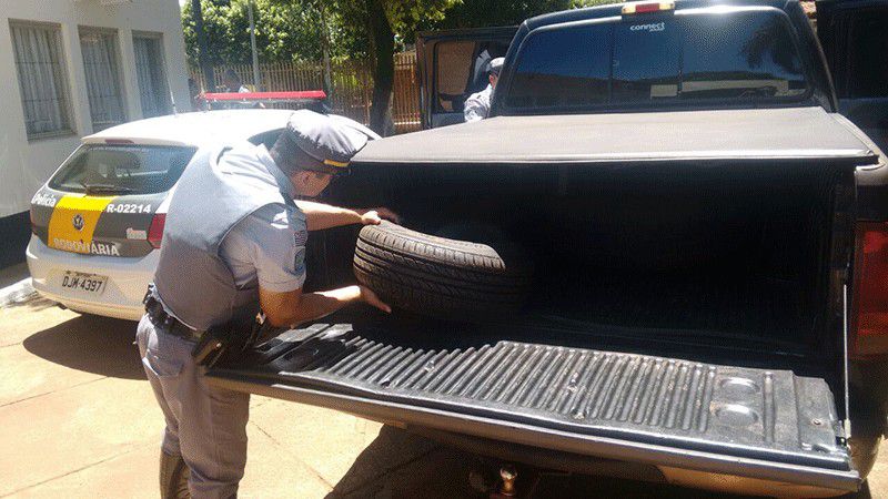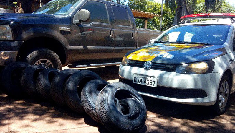 A Polícia Militar Rodoviária apreendeu 28 pneus oriundos do Paraguai e sem nota fiscal, que estavam escondidos dentro de uma Ford F-250 com placas de Dourados-MS, durante uma abordagem na manhã de ontem, 2, na Rodovia Comandante João Ribeiro de Barros (SP-294), km 681, em Paulicéia.