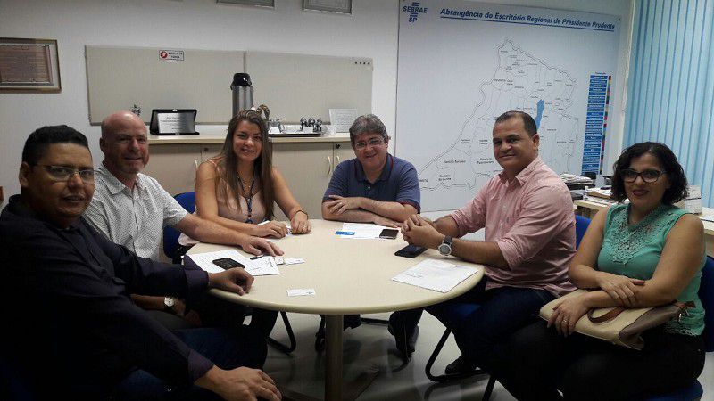 Juliano Brito Bertolini, juntamente com membros da Secretaria Municipal Desenvolvimento Econômico, Habitação e Trabalho, no Sebrae em Presidente Prudente. (Foto: Assessoria)