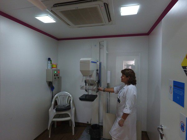 As presas passam por exames de mamografia dentro da carreta (Foto: Assesoria. Croeste)