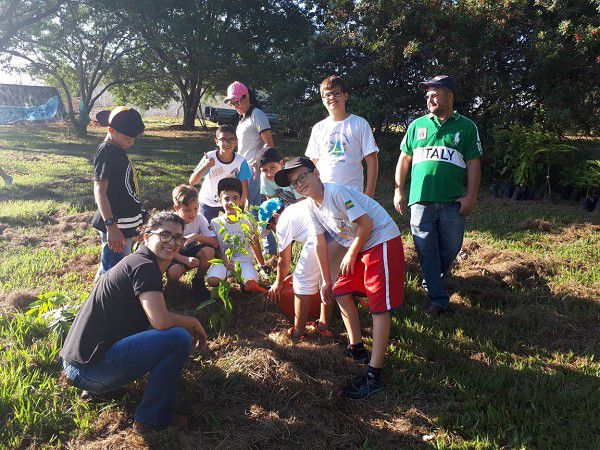 Plantio de árvores por alunos da rede municipal de ensino (Foto: Cedida/Prefeitura Dracena)