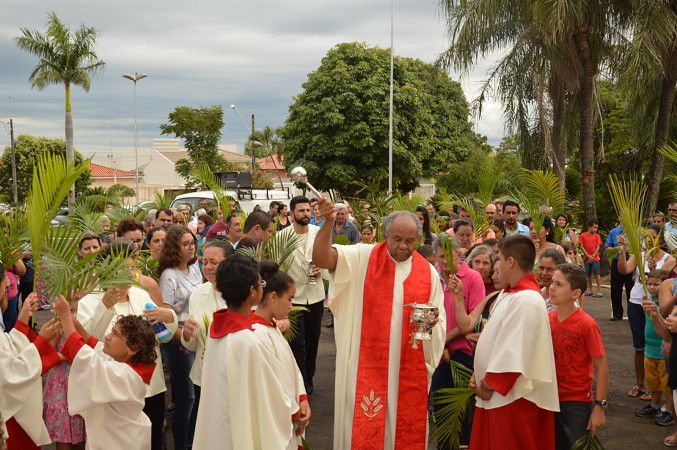 Às 8h saiu a caminhada de frente a capela Nossa Senhora Aparecida, rumo à Matriz. Na chegada, aconteceu a bênção dos ramos e em seguida continuação da missa presidida pelo pároco Pe. Valdemar Cardoso, Pe João de Chico vigário Paroquial presidiu a caminhada e missa no Distrito de Oásis que iniciou-se às 8h, na capela Sagrado Coração de Jesus.