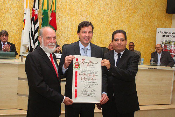 Ontem, o secretário de Estado do Desenvolvimento Social, Floriano Pereira Pesaro (PSDB) recebeu o Título de Cidadão Honorário durante a 8ª sessão ordinária na Câmara Municipal de Dracena.