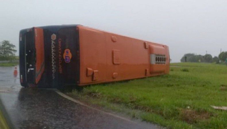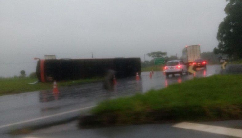 Um ônibus tombou na madrugada de hoje (31) na Rodovia Comandante João Riberio de Barros (SP-294), altura do trevo de acesso à Rodovia Plácido Rocha (Lagoa Seca). O acidente ocorreu por volta das 3h20 e na hora chovia.