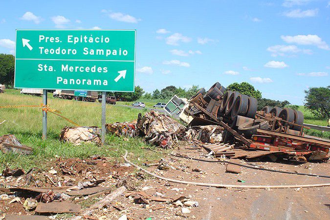 Hoje, 5, por volta das 11h, um motorista de 50 anos ficou preso nas ferragens, após tombar a carreta, placas de Iturama-MG, carregada com fardos de sucatas, na rotatória de acesso a Tupi Paulista pela rodovia Comandante João Ribeiro de Barros (SP-294).
