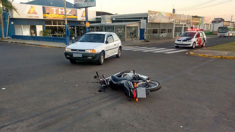 Acidente entre carro e moto é registrado em cruzamento da av. Washington Luiz em Dracena