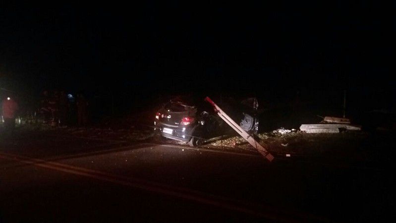 Gol atingiu o poste agora à noite na vicinal que leva à Pousada Bom Samaritano (Foto: Cedida/whatssapp)