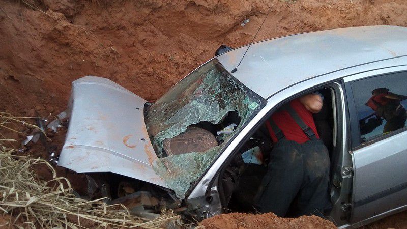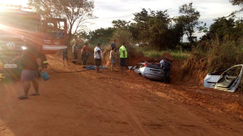 Elas seguiam no Focus quando por motivos a serem apurados caiu em um buraco a margem da estrada de terra.