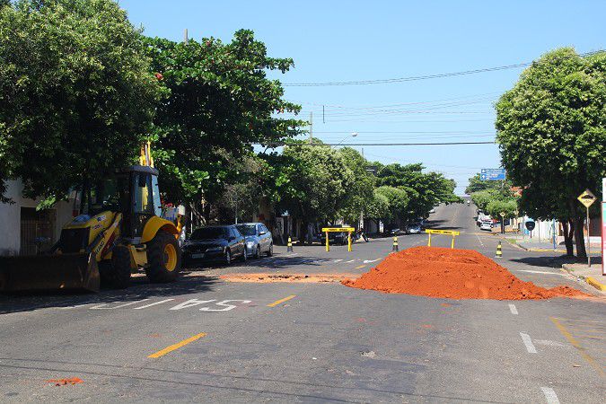 Motoristas devem redobrar a atenção ao passar pela avenida Rui Barbosa no quarteirão do terminal rodoviário uma vez que o trânsito está impedido no local por conta dos trabalhos da equipe da Emdaep.