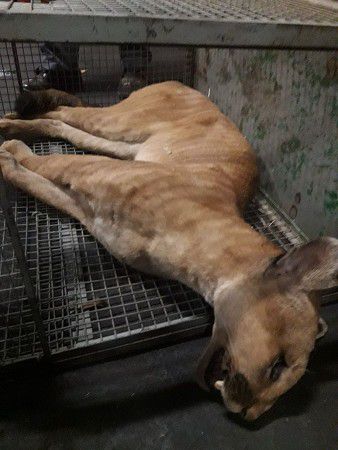 A onça capturada no ferro-velho em Dracena acabou morrendo: segundo a PM Ambiental ela estava desidratada (Foto: Cedida/PM Ambiental)