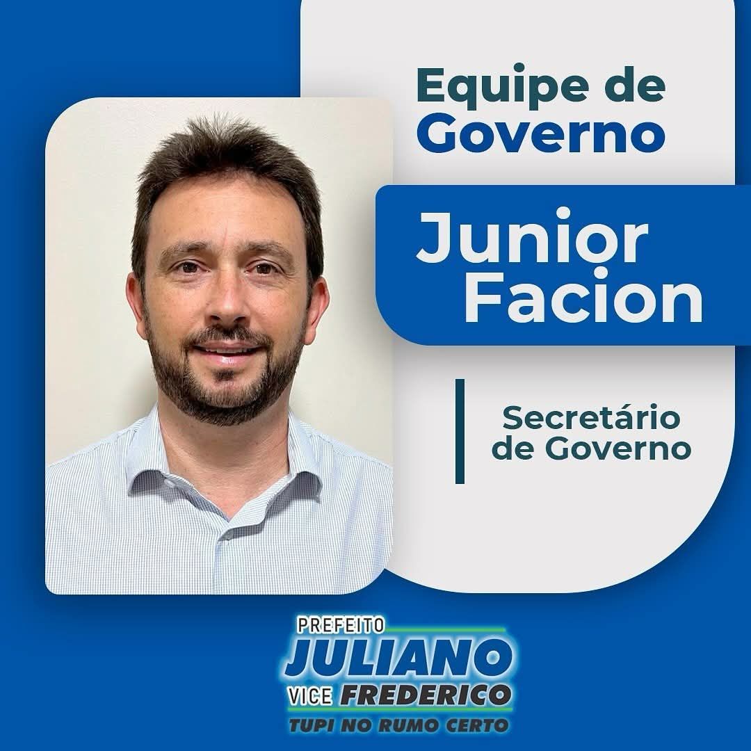 Prefeito eleito Juliano Guiro e seu Vice Frederico Marquezin anunciou o seu Secretário de Governo, Dr José Paulo Facion Júnior.